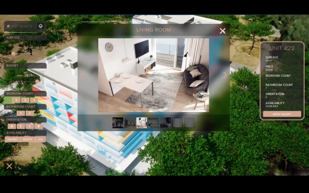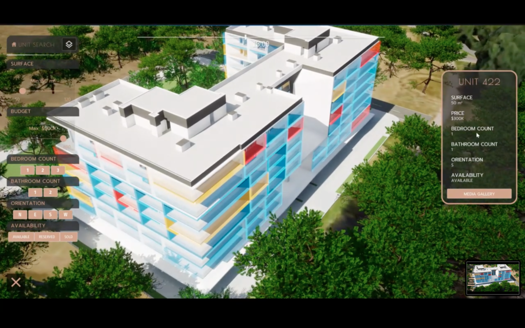In addition to the features we mentioned, in order to present the opportunities within the structure more easily, you can click inside the building and move around it with a camera angle, and the correct transfer of the services offered to customers is maximized. At the same time, with the ‘Unite Search’ feature, you can offer the most suitable apartment to your customer in the fastest way by making a search filter suitable for your customers’ budgets and requests. Features such as square meters, number of rooms, floor plan view and information can be added for each apartment, and optionally, you can add a 360-degree panorama feature for each apartment. Feel free to contact us.
