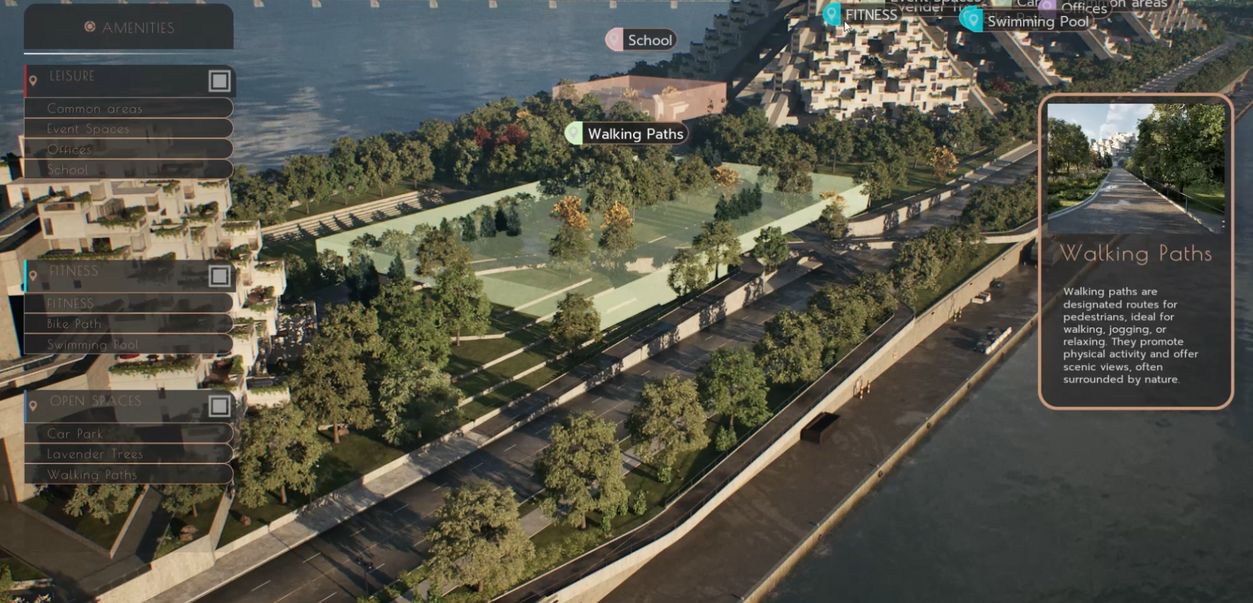 Hillside Project is an interactive 3D visualization that allows clients to explore the project’s location, amenities, and unit options seamlessly.